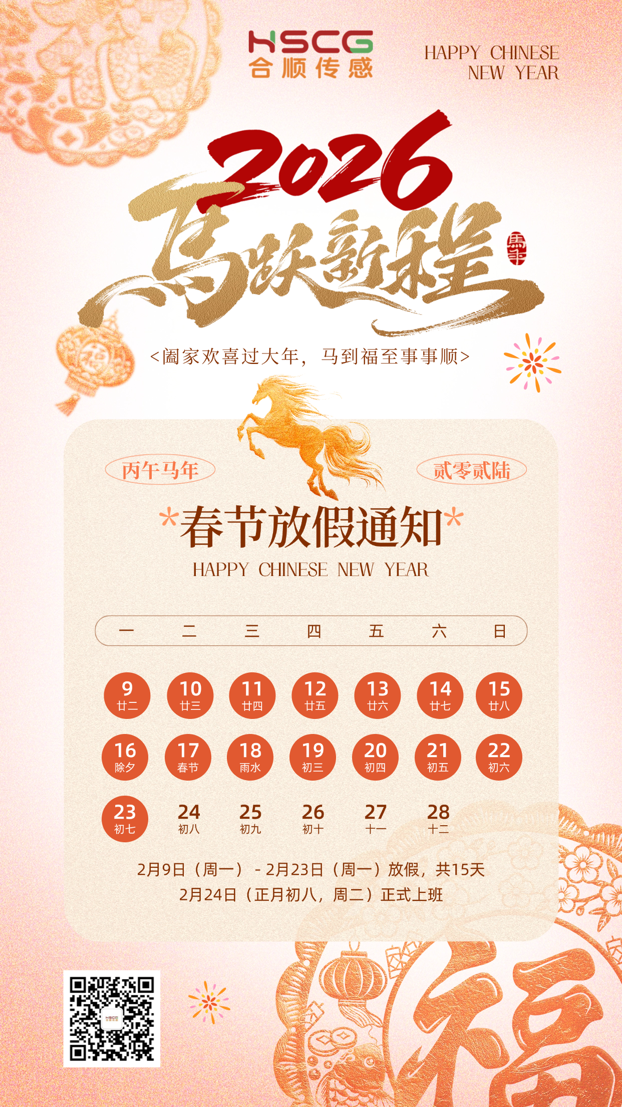 您好!新春将至,万象更新。值此2026年丙午马年春节来临之际,合顺传感有限公司全体员工向您及您的家人致以最真挚的新春祝福!感谢您在过去一年里的信任相伴与鼎力支持,您的认可的是我们深耕传感领域、精进服务品质的不竭动力。